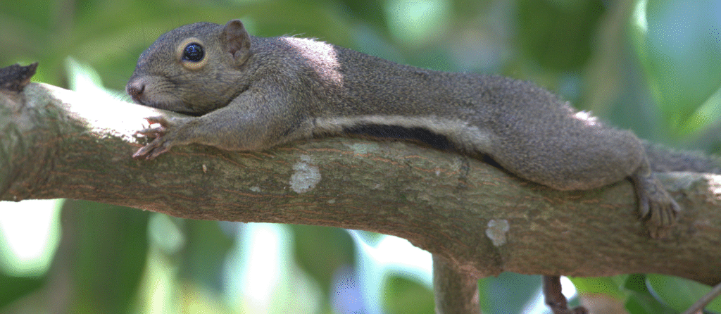 合間に撮ったリス。地面と平行な枝に、ぐでーっとしてます。なんか人っぽくて可愛い。