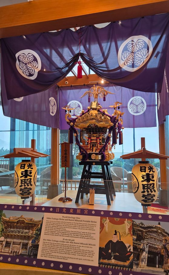ロビーには日光東照宮をもじったり、横綱貴乃花の人形と土俵などが展示されてて なんともいえずほっこりします。外には土俵もありました。