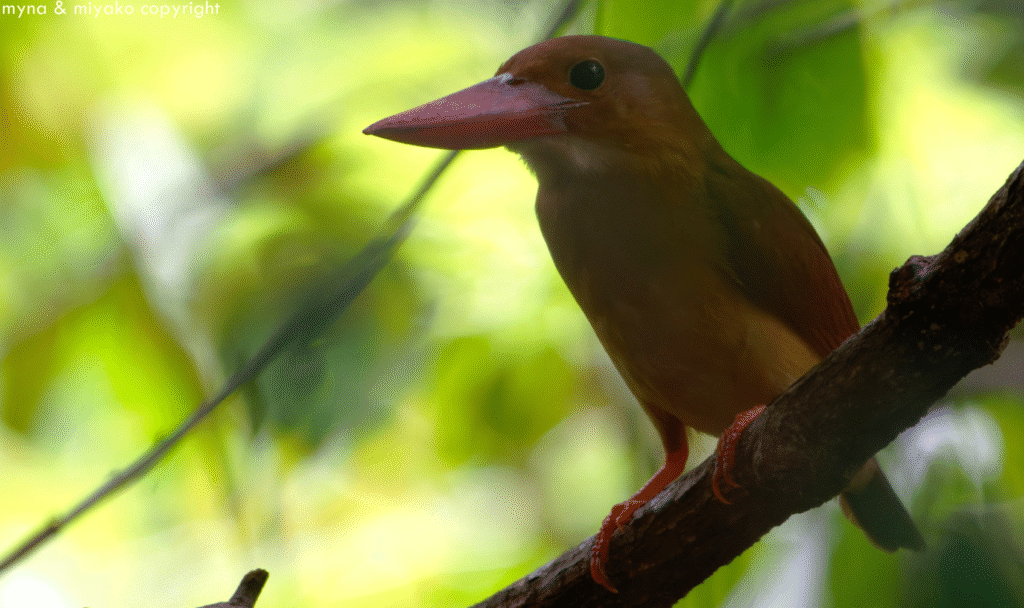 シンガポールには旅鳥として今頃の時季に数羽やってきます。今年も去年と同じ公園、同じ場所に現れました。ただ、去年の個体は羽が紫がかったリュウキュウアカショウビンに対して、今年はオーソドックスな茶色羽なので別個体かもしれません。